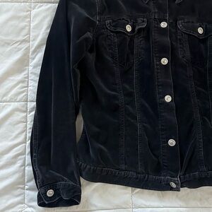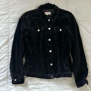 VINTAGE Y2K CASUAL BLACK COTTON VELVET JACKET SIZE-L, fits smaller like a M