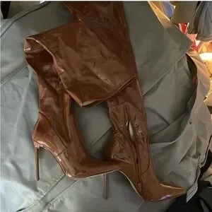Steve Madden Patent Brown Stiletto Boots 7.5