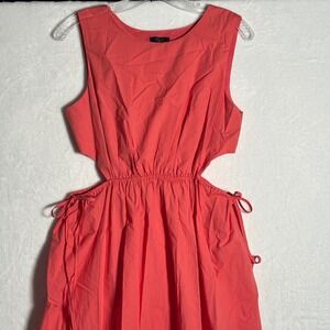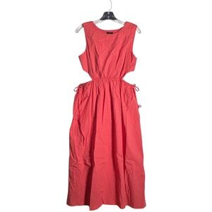 Rails Women Coral Pink Organic Cotton Tencel Cut-Out Midi Dress Large Sleeveless