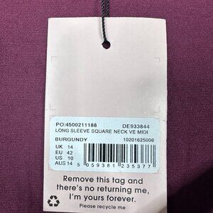 2/$30 NWT MIssguided Long Sleeve Square Neck Very Essential Midi Burgundy #A1602