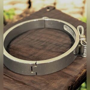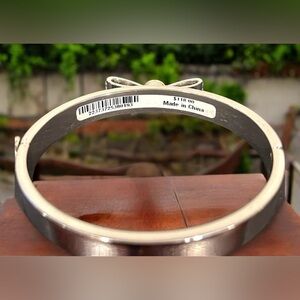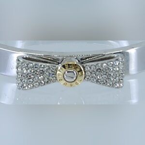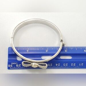 Henri Bendel Silver Tone Hinged Bangle Bracelet & Crystal Pave Bow NWT, Vintage