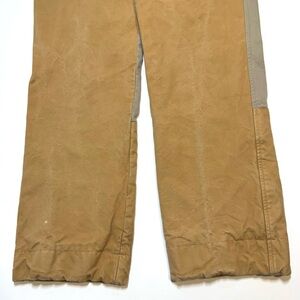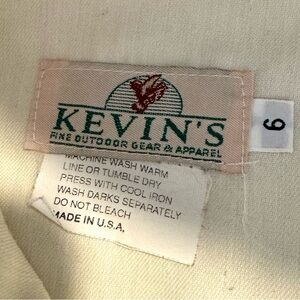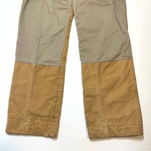 Vintage Kevin’s Fine Outdoor Gear & Apparel Two Tone Straight Leg Hunting Brush Field Khaki Canvas Pants. Made in the USA. Double faced front panel. High waisted. Zip fly with hook & eye closure. Slip pockets & back welt pockets. Thick canvas material. A few minor marks as shown.
