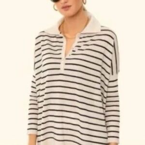 Long Sleeve Polo Shirt is an oversized knit top featuring a spread collar, dropped shoulders, and a partial button placket