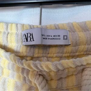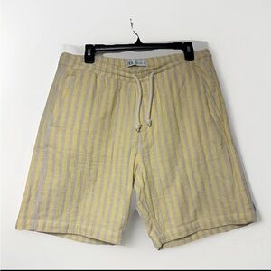 ZARA Men's Shorts Size L Striped Yellow Drawstring Beach Preppy Vacation Canvas