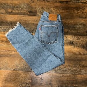 Stylish Levi's straight leg jeans. Light blue denim with classic stitching. Perfect for everyday wear.