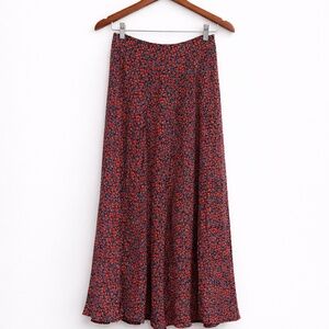 ZARA Floral High-Waisted Skirt | Black Red Blue Print | Size S