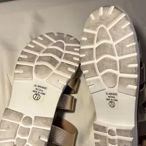 Chic Soda sandals with metallic gold straps. Perfect for everyday style.