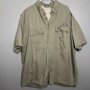 Eddie Bauer Shirt Men's 3XL Green Fishing Outdoor Vented Short Sleeve Button Up
