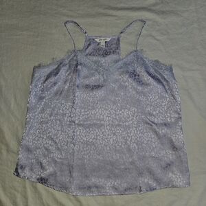 Nine West Icy Pastel Lavender Cami Racerback Cheetah Print Lace Tank Top 90s