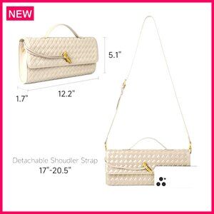 Woven Vegan Leather Evening Clutch Crossbody Bag Adjustable Strap Formal