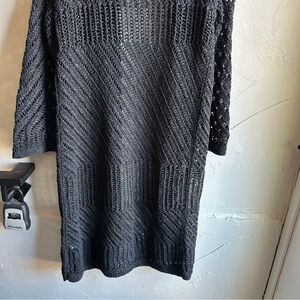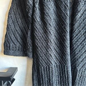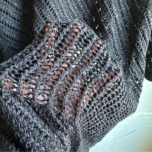 Black Open Knit Duster Cardigan Goth Whimsigoth Boho Dark Romantic Layer m/l Bell Sleeves marked a small would fit a medium or large super relaxed oversized fit