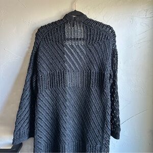 Black Open Knit Duster Cardigan Goth Whimsigoth Boho Dark Romantic Grunge Y2K S