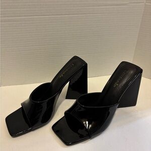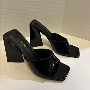 🔵LEMONADE Patent Faux Leather Black Block Heeled Mules