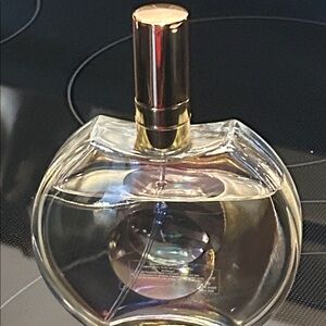 Stylish clear glass bottle featuring elegant gold accents. Perfect for any collection. Big bottle. I don’t like it so your gain. My husband got it for me. I couldn’t find the lid and I threw the box away. It was sold as a Tester. I put a lid on it. I used what is gone. It was brand new and I just have so many
