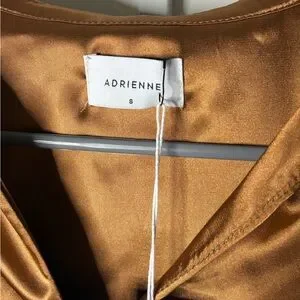 Adrienne Copper Shimmer Blouse S Metallic Satin V-Neck Stretch Top
