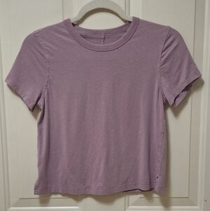 Lululemon Classic-Fit Cotton-Blend T-Shirt. This shirt is designed as an everyday essential and features a cropped length that typically hits around the waiste. It is made from a soft, four-way stretch fabric that is a blend of cotton, lyocell, and linen.