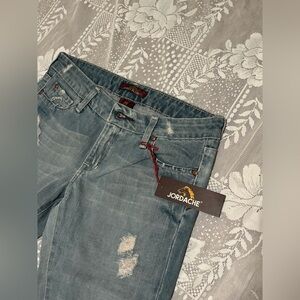 Jordache Y2K Boot cut Flare Jeans, the cutest mid rise jeans! Nice durable denim with distressed patches. New with the brand tag but no barcode tag.