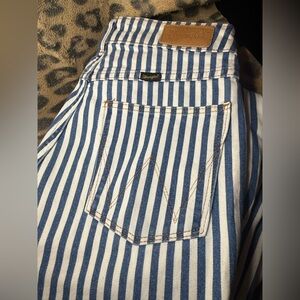 Classic Wrangler denim with blue and white stripes. Features signature stitching on the pocket. Size 12/32 in Women’s NWOT