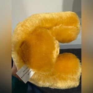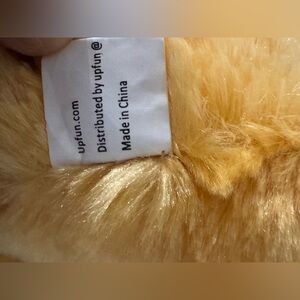 Soft and cuddly orange teddy bear with a charming red bow. Perfect for kids to snuggle and play with.