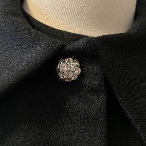 70s Vintage Bleeker St Black Shift Dress with Cropped Rhinestone Button Jacket
