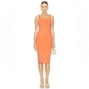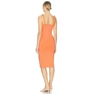 Alina is a curve-hugging midi dress that feels exceptionally easy to wear, but is super cool and sexy, too. We love the fun color and the body-hugging fit, not to mention the looped straps. Add flats or heels, both work.