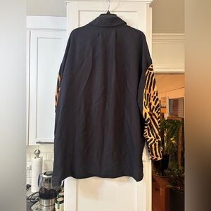 Farm Rio tiger long sleeve button up blouse in black orange combo