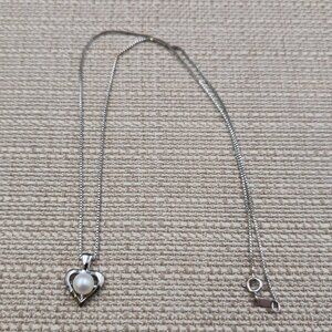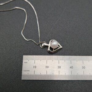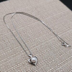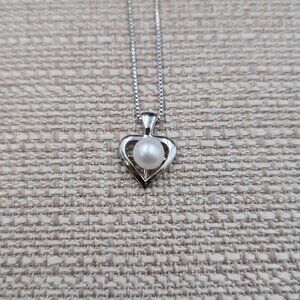 18 Inch Sterling Silver Small Heart Pearl Pendant Necklace A7078