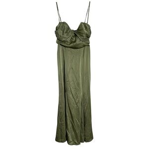 Elevate your elegance with this sage green satin midi dress. This stunning piece features a sweetheart neckline and delicate spaghetti straps, offering a sophisticated charm. The luxurious satin fabric drapes beautifully, highlighting your silhouette while offering a smooth and comfortable fit. The midi length and flared hem add a touch of femininity, making it perfect for both daytime and evening occasions. Pair it with strappy sandals and a clutch for an effortlessly chic look. Ideal for weddings, cocktail parties, or a stylish night out, this dress is a must-have for any fashion-forward wardrobe.