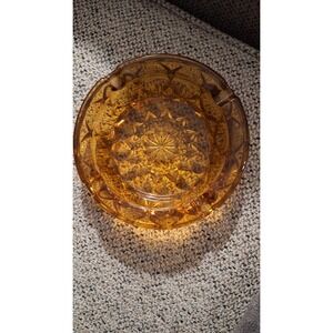 Vintage Round Amber Cut Glass Ashtray Cigarette or Trinket Dish 6-1/8" D