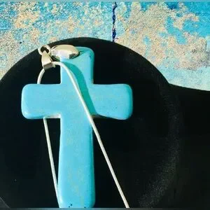 NWOT Turquoise Cross with brown definition streaks. Pendant is 1 1/2 inches wide and 2 inches tall.