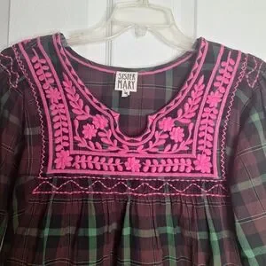Sister Mary embroidered Plaid top Size Medium