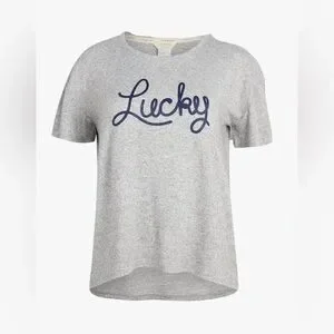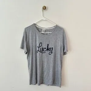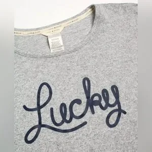 Lucky Brand Western Rodeo Script Graphic Modal T Shirt Grey Navy Oversized Fit M