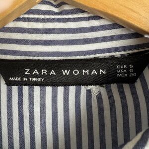 Zara Striped Flowing Embroidered Floral Blouse Blue White Women’s Small