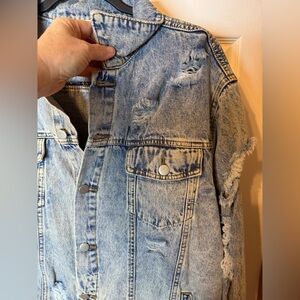 Stylish blue jean distressed jacket. Perfect for everyday wear. Timeless design.