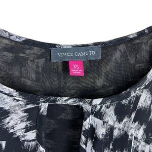 Vince Camuto Faux Wrap Surplice Keyhole Patterned Black and White Blouse Size XS