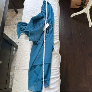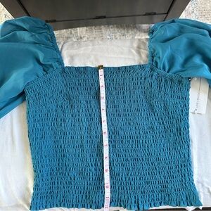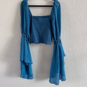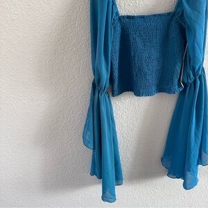 Teal Smocked Crop Top NWT Sheer Bell Sleeve Boho Cottagecore Festival Top M