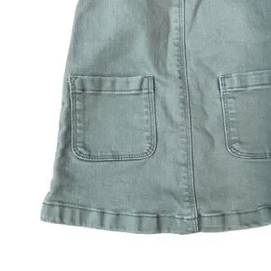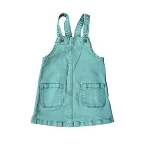 Stylish green denim overalls with front pockets. Adjustable straps for easy wear. Second picture shows green color best.