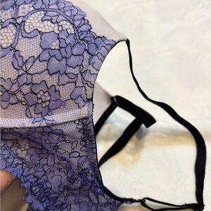 Chic and stylish lace bra. Cream base with lavender lace overlay. Perfect for elegance and comfort.
