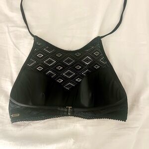 This Roxy bikini top is a summer staple in a classic, versatile black. The timeless triangle silhouette features adjustable sliding cups, allowing you to customize your coverage. Designed for both style and function, the thin straps tie at the neck and back to ensure a secure, comfortable fit whether you’re swimming or sunbathing. This piece is perfect for mixing and matching with any patterned or solid bottoms in your collection. It is an essential, high-quality basic that provides a flattering and athletic look for any beach or pool day. It can also be paired with high waisted shorts for a fun summer look. Features: • Brand: Roxy • Size: Medium • Style: Triangle bikini top • Color: Solid Black