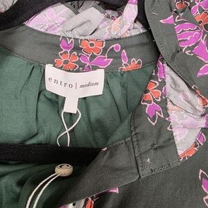 entro botanical print midi dress w/ Ruffle collar dark olive