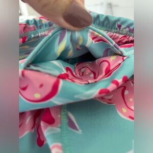 Simply Southern women’s tropical floral leggings with an aquamarine & pink hibiscus floral pattern has 2 front pockets & a hidden pocket in the waistband. Add a little color & playfulness to your workout outfit! Size is large.