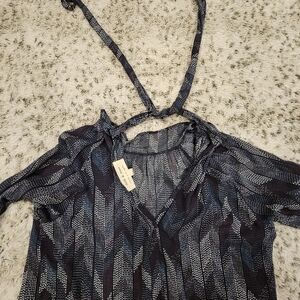 Anthropologie Cloth & Stone Lightweight SZ S Mock Neck Back Tie Long Sleeve Top