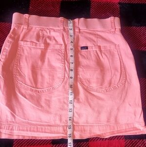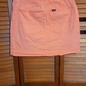 Lee Pastel Coral Skort with Front Pockets, And Beltloops. This skort is practical, and durable. Not to mention comfortable. The size is a ladies 6. They're in great condition .
