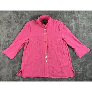 Ali Miles Woven Button Front Tunic Blouse Top Blossom Pink Size M