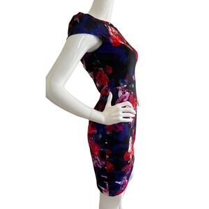 Betsey Johnson Bright Floral Print Cap Sleeve Sheath Dress Career Cocktail Sz 2