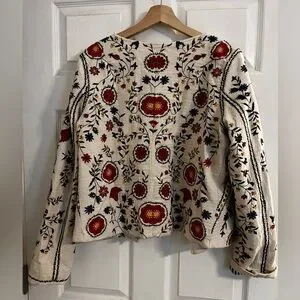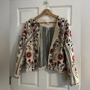 Anthropologie Floral Embroidered Jacket - Cream and Multicolor