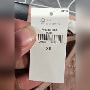 Brand new with tags. High rise. Drawstring and elastic waistband. Button And zipper closure. Deep front pockets. A pinkish dusty rose color. Measurements and fabric content listed above in pictures.