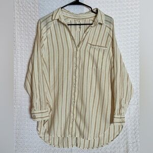 Aerie Linen Blend Striped Button Down Shirt | Oversized | Size Small