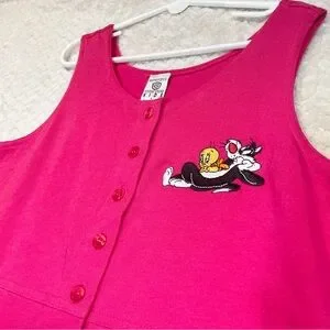Warner Bros 1994 Looney Tunes Embroidered Pink Romper Girls Large 90s Kidcore
