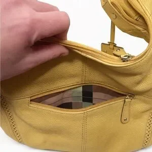 Tignanello Yellow Pebbled Leather Hobo Shoulder Bag w/ Zipper Pockets